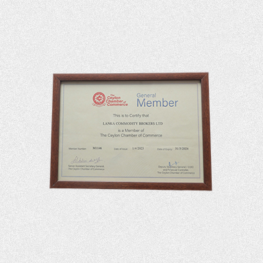This certificate recognizes LCBL’s membership with the Ceylon Chamber of Commerce, highlighting its role as a key player in Sri Lanka’s business landscape.
